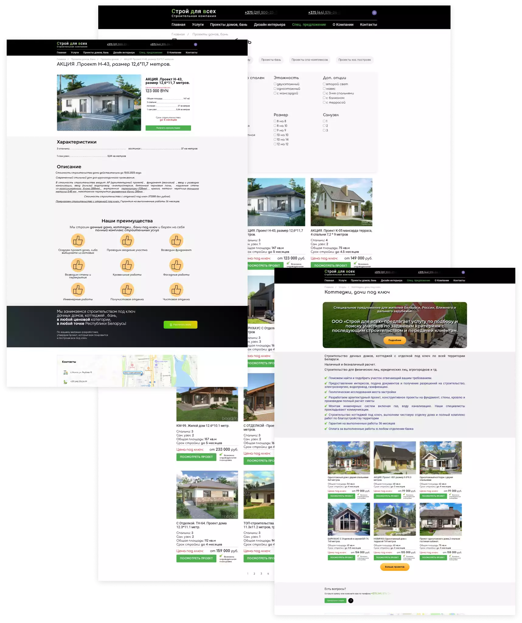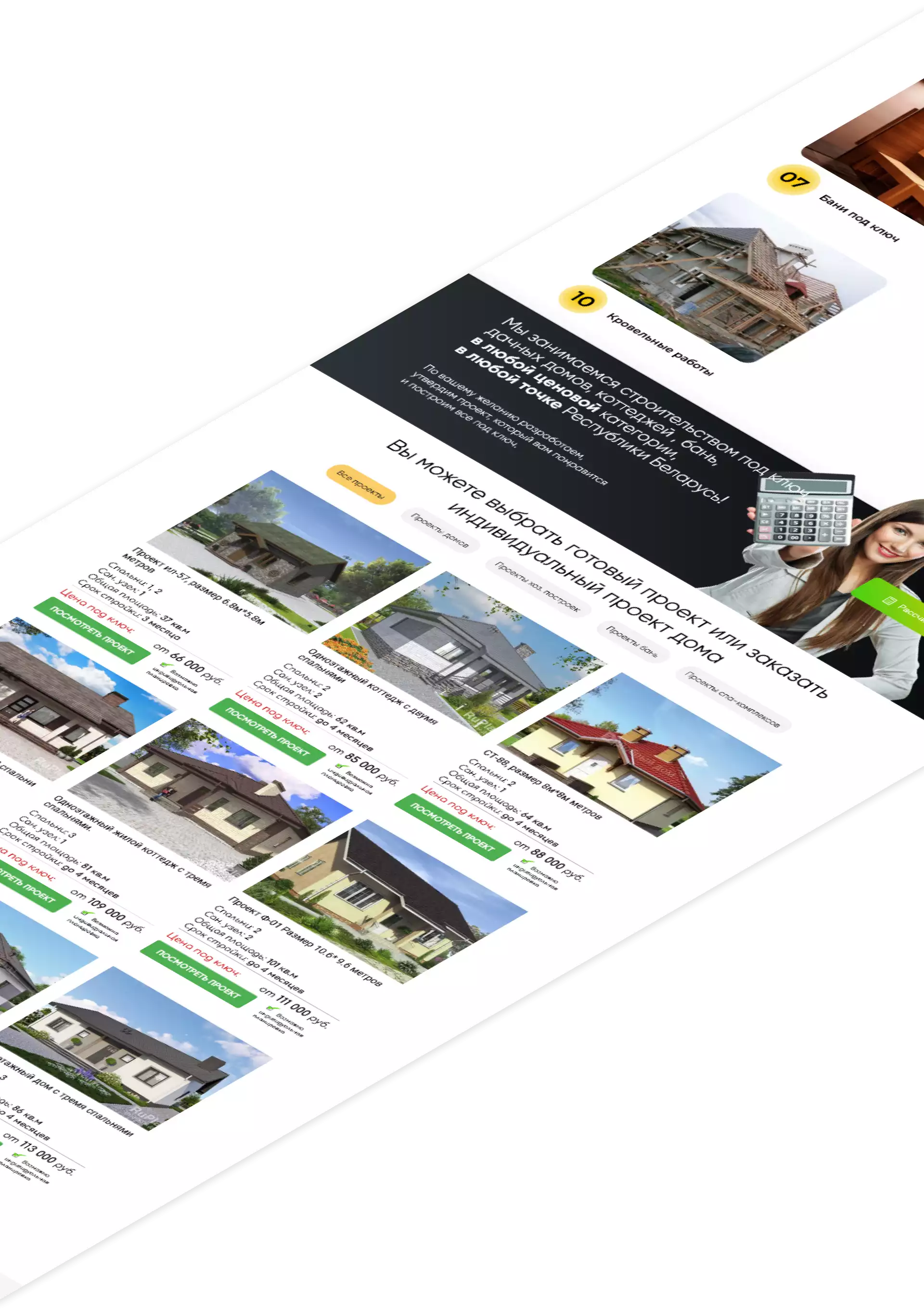 Разработка сайта для компании, специализирующейся на строительстве коттеджей, бань и спа-комплексов. Создание индивидуального дизайна, отражающего эстетические и архитектурные особенности проектов. Верстка и программирование многостраничного сайта с удобной навигацией, адаптированной под мобильные устройства. Реализация каталога готовых проектов с подробным описанием, планировками и фотогалереями.