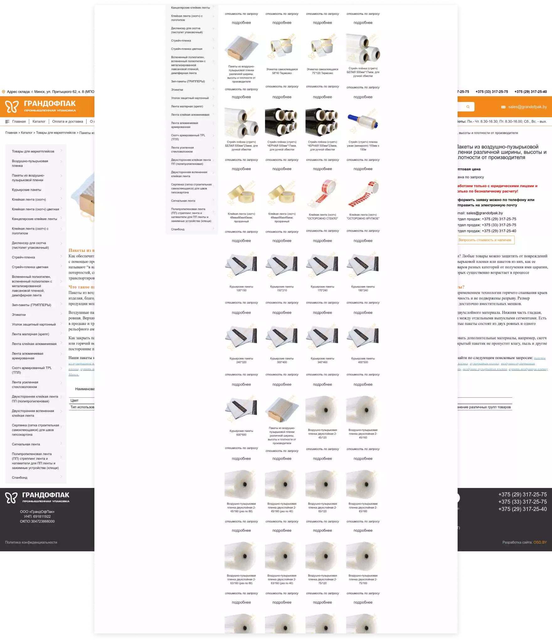 Разработка корпоративного сайта для компании-производителя упаковочного материала. Был произведен редизайн, верстка и программирование системы управления. Наполнение сайта товарами, подключения модуля импорта/экспорта товаров для удобного и быстрого внесения правок содержимое каталога.