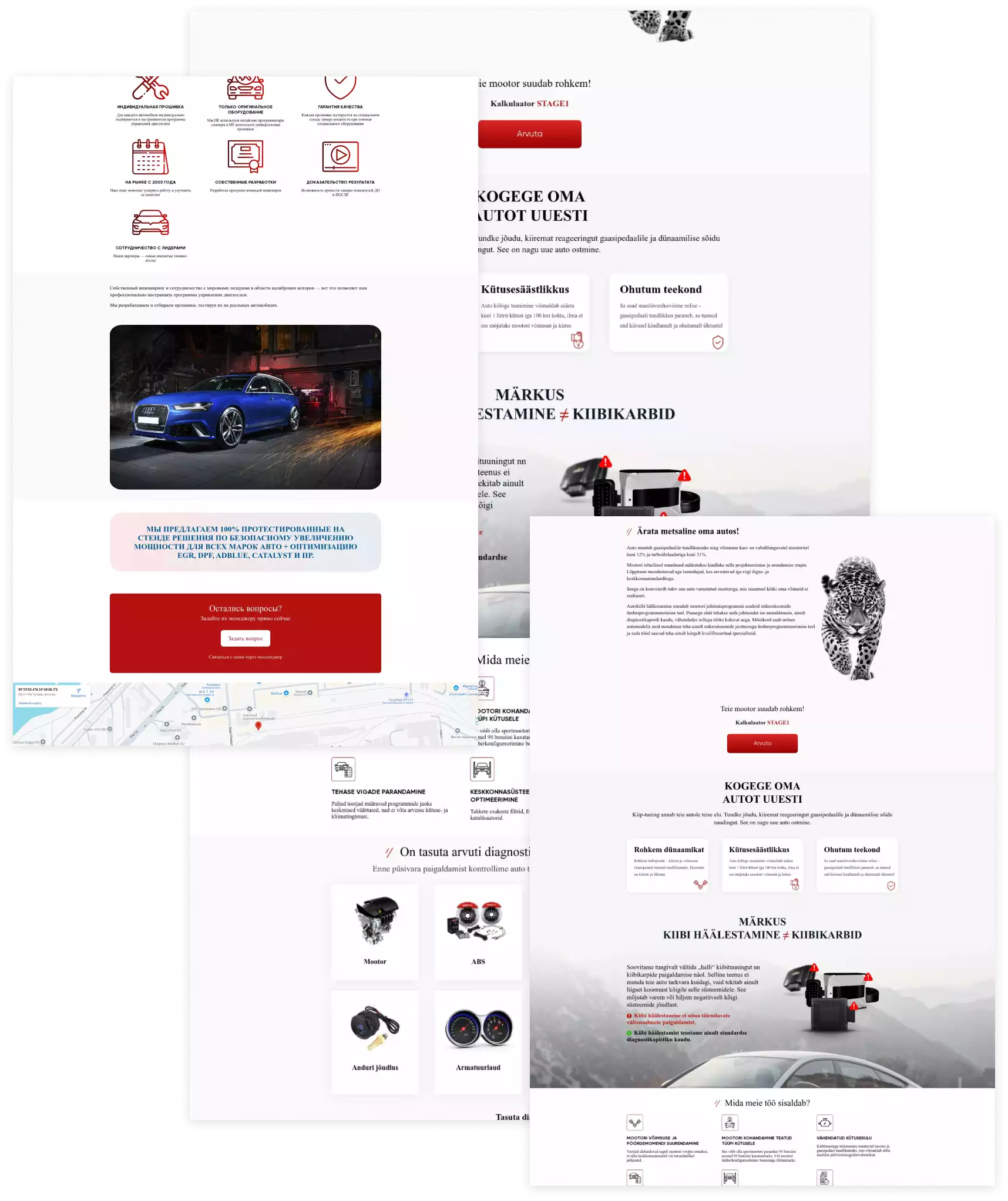 Разработка сайта для компании, оказывающей услуги по чип-тюнингу двигателей автомобилей в Эстонии. Создание индивидуального дизайна, подчеркивающего техническую направленность и экспертный уровень компании. Верстка и программирование многостраничного сайта с удобной навигацией и адаптацией под все типы устройств.