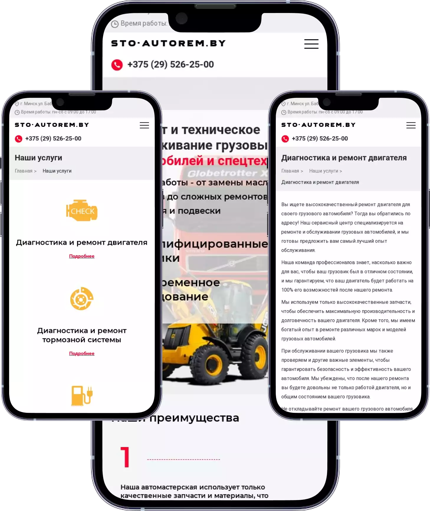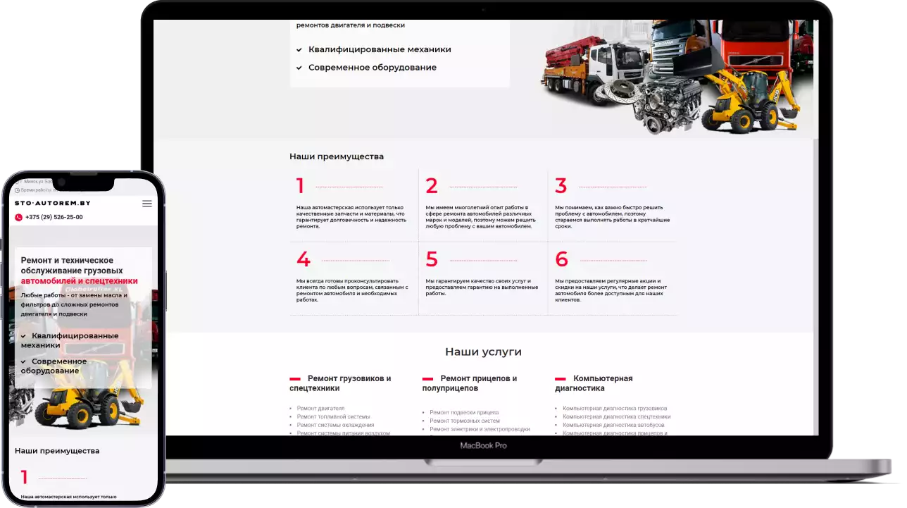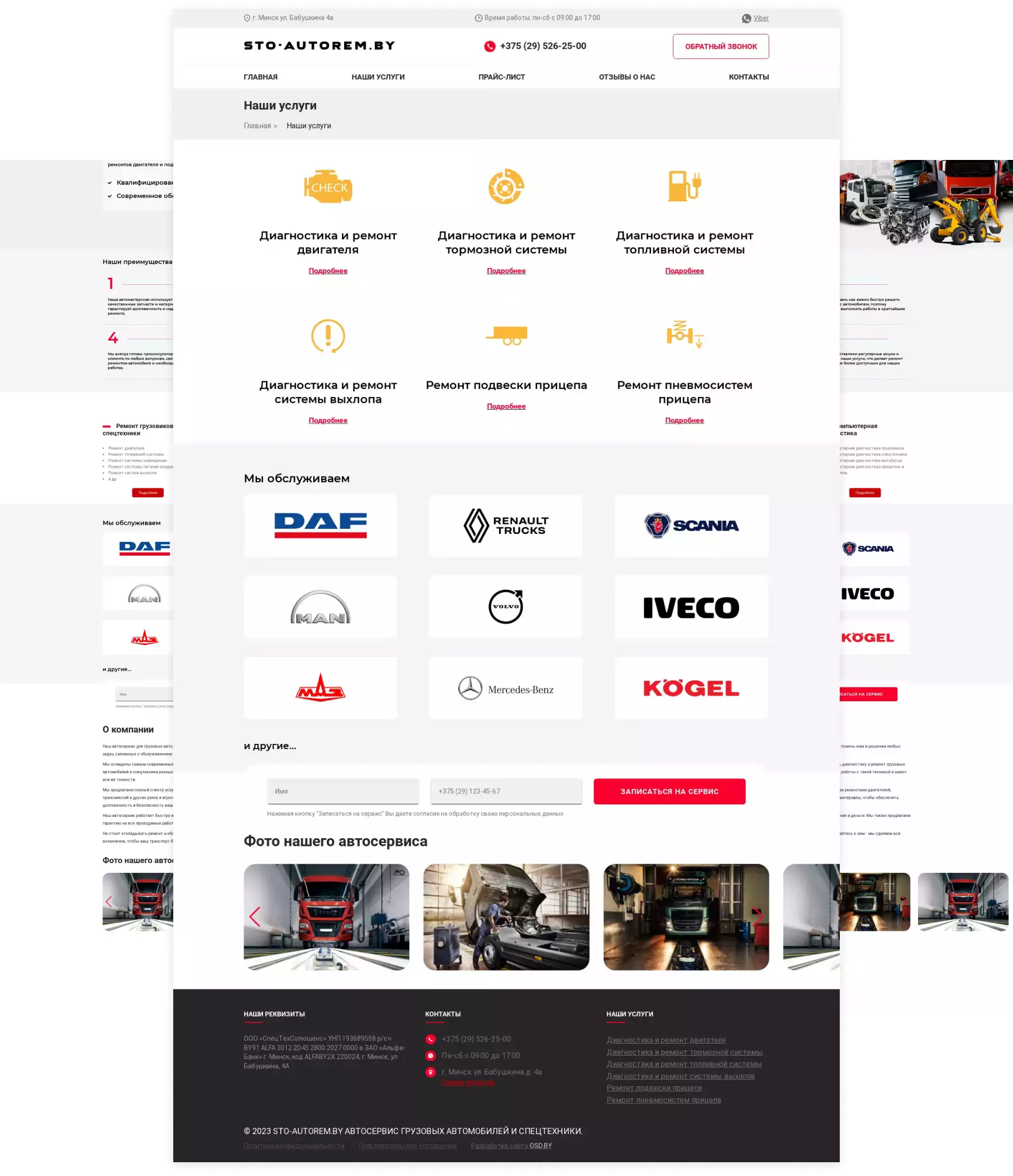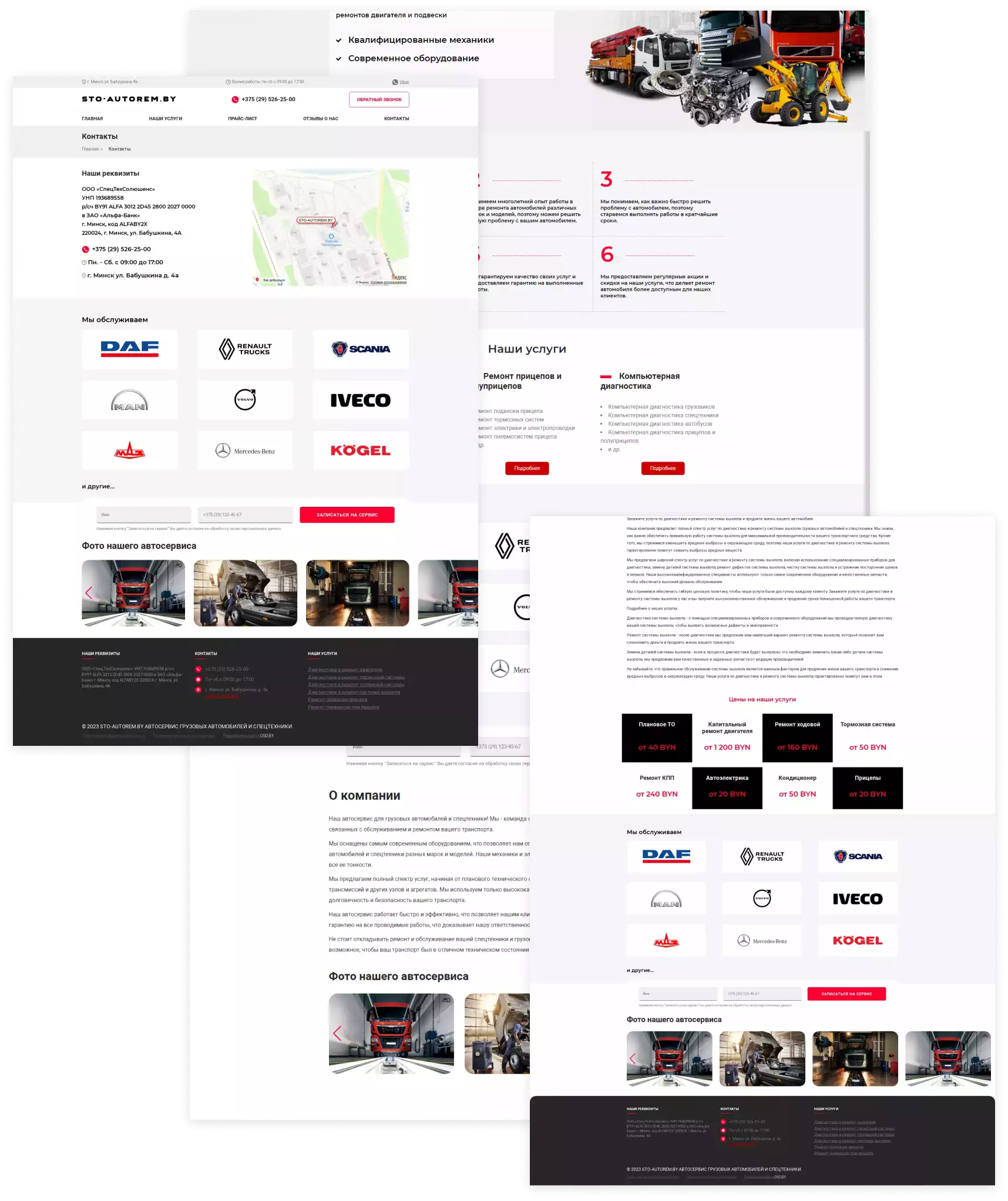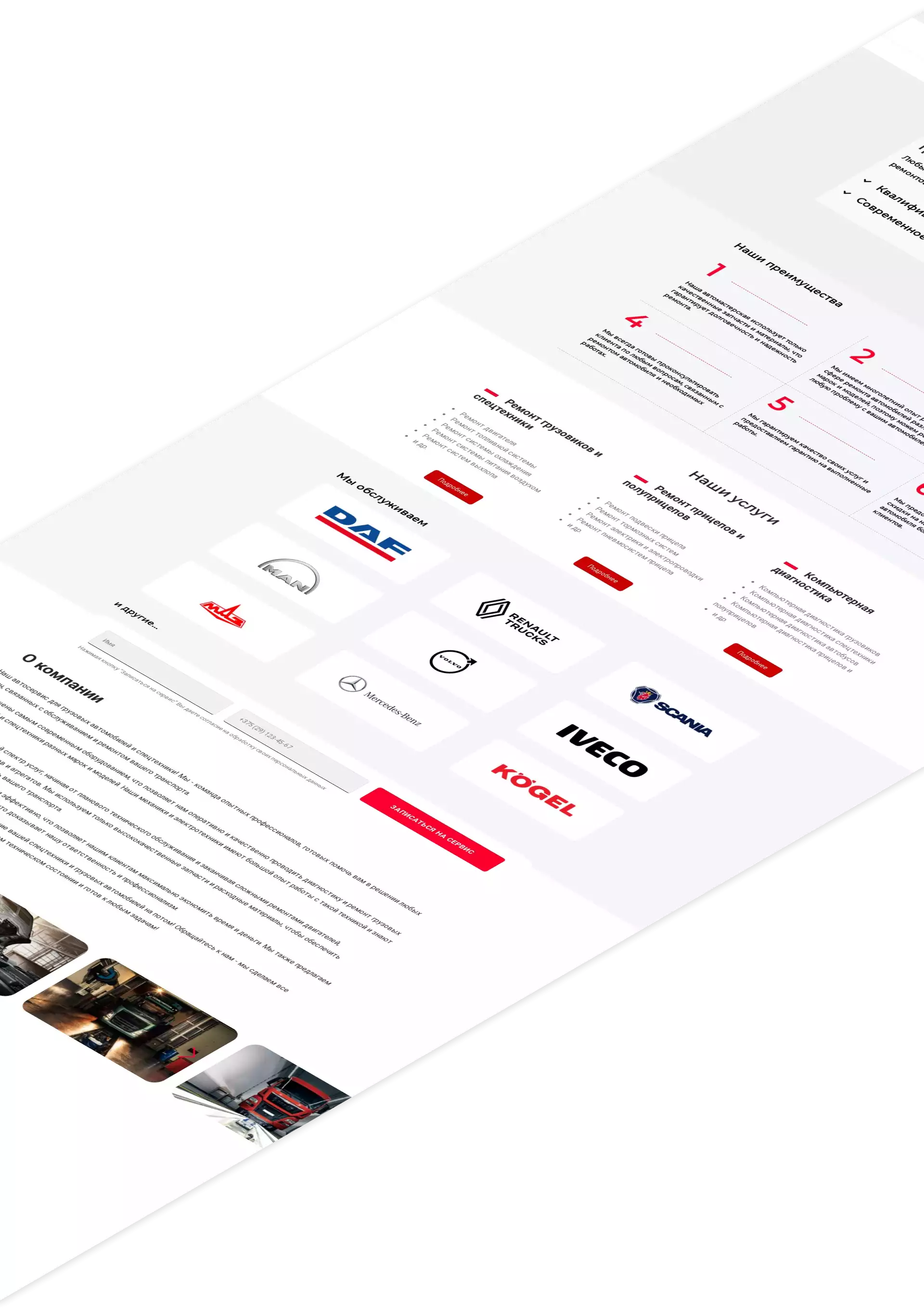 Разработка сайта для компании по ремонту грузовых автомобилей и спецтехники. Разработка дизайна, верстка и программирование системы управления, базовая подготовка для сео-продвижения.