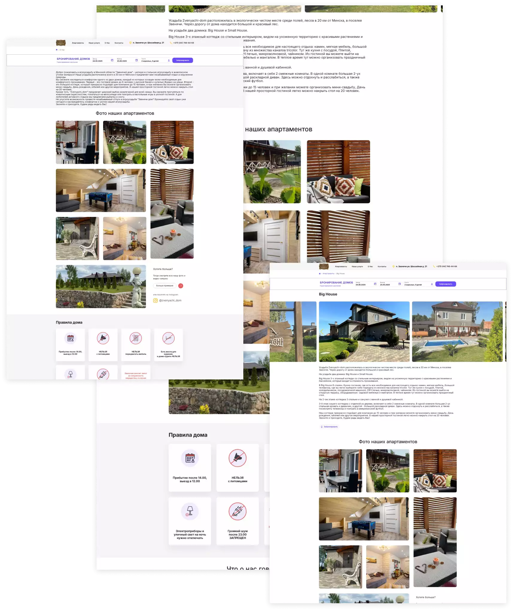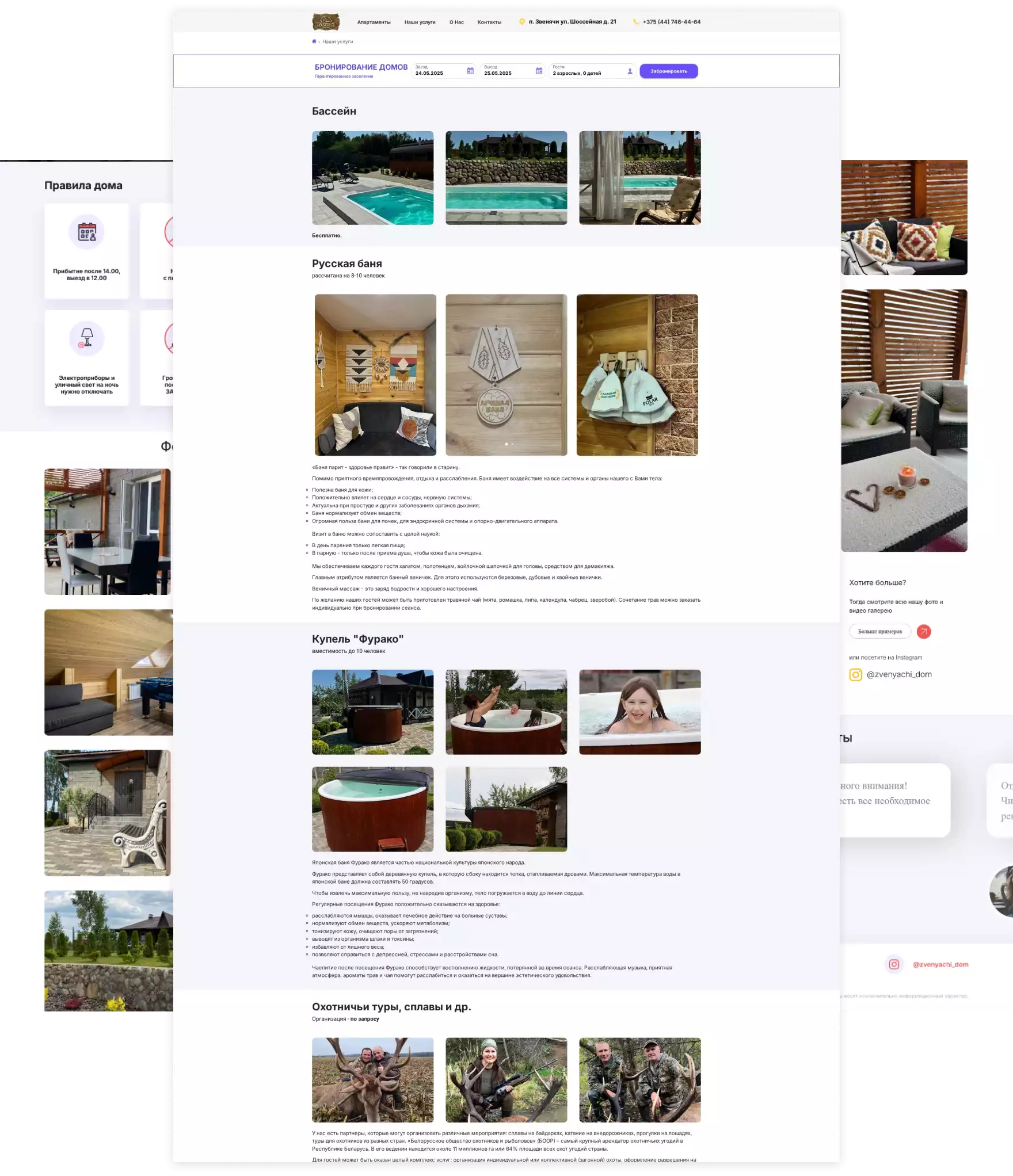 Разработка сайта для агроусадьбы с каталогом апартаментов и системой онлайн-бронирования. Создание индивидуального дизайна, адаптированного под тематику загородного отдыха. Верстка и программирование многостраничного сайта с удобной навигацией и адаптивной версией для мобильных устройств. Реализация каталога апартаментов описанием условий проживания и фотогалереей. Интеграция модуля бронирования с календарём доступности и подтверждением заявки.